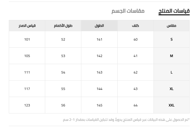 - متوفر بمقاسات تناسب مختلف الأجسام